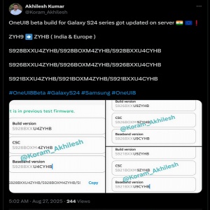 갤럭시 S25는 펌웨어 버전 BYI9, S24는 CYI9을 받는다.
