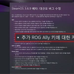 최근 배포된 스팀OS 3.6.9 베타의 패치 노트에서 ROG Ally 키를 지원한다는 내용이