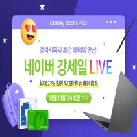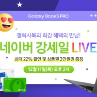 삼성전자 갤럭시북5 프로 강세일 블루밍앵콜전 LIVE 삼성전자 공식파트너 ㈜유니씨앤씨가 12월 10일 오전 11시, 네이버 삼성온라인스토어 스마트스토어에서 '강세일' 블루밍앵콜전 라이브 방송을 진행한다.이번 라이브에서는 인텔 최신 코어 울트라 '루나레이크' 프로세서를 탑재한 갤럭시북5 프로와 갤럭시북5 프로360을 집중 소개하며, 라이브 시청자에게 특별 할인 쿠폰 포함 최대 53만원 할인... |